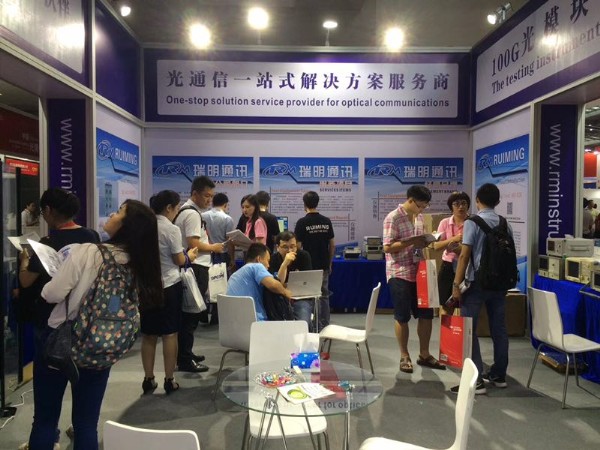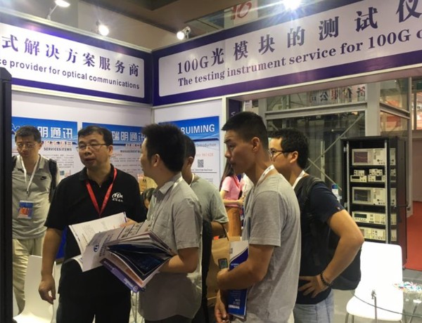 第19屆中國國際光電博覽會于2017年9月6日-9日在深圳會展中心1號-6號館盛大開幕。作為專業供應商,瑞明通訊攜帶了光通信領域最新的數款產品以及搭建了40G、100G的測試解決方案等,吸引了眾多觀展商駐足圍觀,紛紛向我們的銷售人員咨詢產品的參數與價格,還與我們的工程師就光通信領域的一些技術問題進行了探討,甚至有些客戶當場測試,簽單,要購買儀器;還有些客戶則留下名片,表示光博會后會再聯系。如下圖: